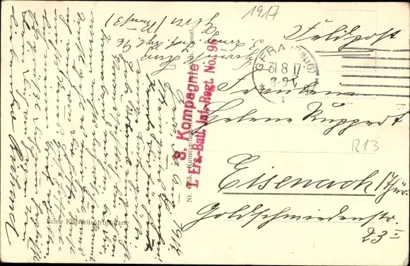 Zustand, siehe Scan, gelaufen, 1917 - ca 14 cm X 9 cm