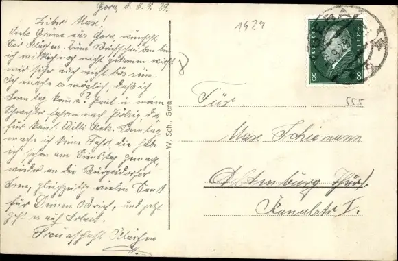 Zustand, siehe Scan, gelaufen, 1929 - ca 14 cm X 9 cm