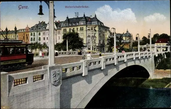 Ak Gera in Thüringen, Heinrichsbrücke, Straßenbahn