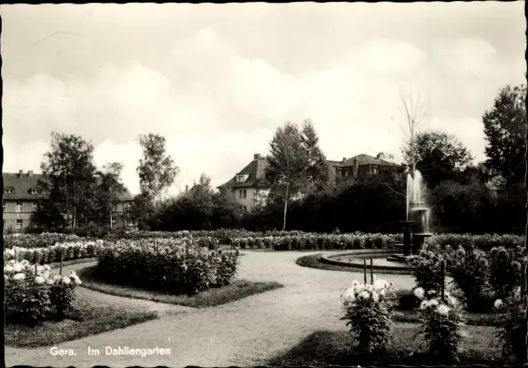 Ak Gera in Thüringen, Im Dahliengarten, Springbrunnen