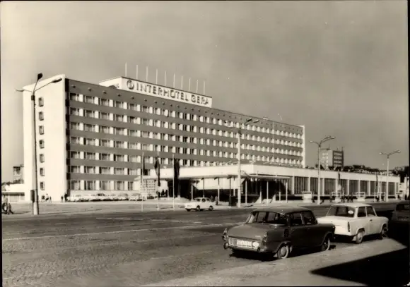 Ak Gera in Thüringen, Interhotel Gera, Trabant