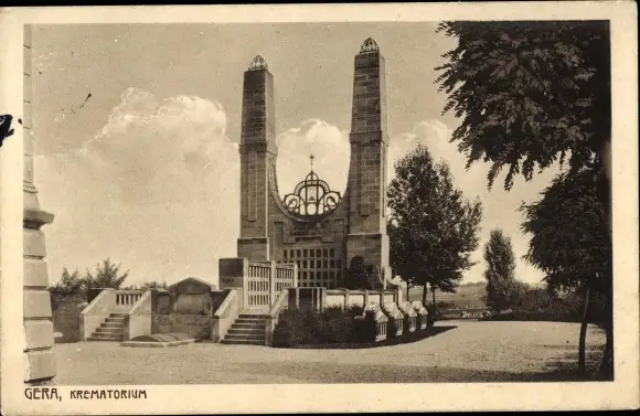 Ansichtskarte, Postkarte, Krematorium, Urne, Friedhof, Friedhöfe, Gottesacker