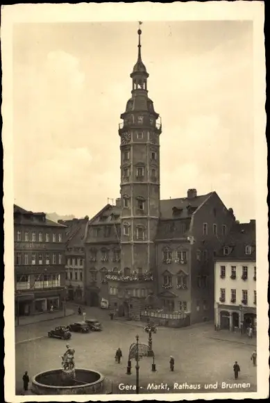 Ak Gera in Thüringen, Markt, Rathaus, Brunnen