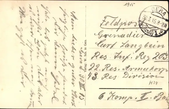 Zustand, siehe Scan, gelaufen, 1915 - ca 14 cm X 9 cm