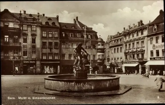 Ak Gera in Thüringen, Markt, Simsonbrunnen, Geschäfte