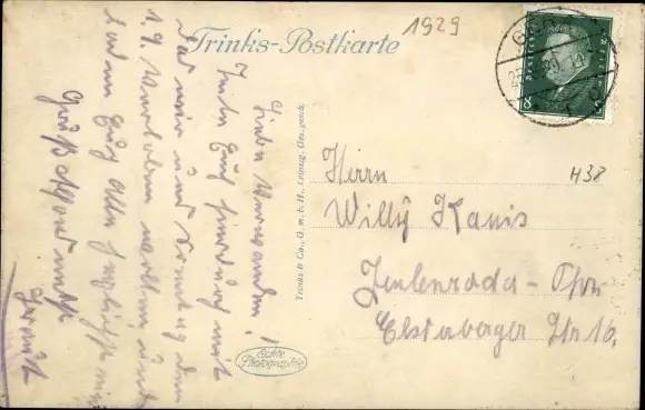 Zustand, siehe Scan, gelaufen, 1929 - ca 14 cm X 9 cm