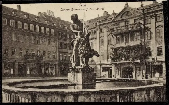 Ak Gera in Thüringen, Markt, Simsonbrunnen, Geschäfte