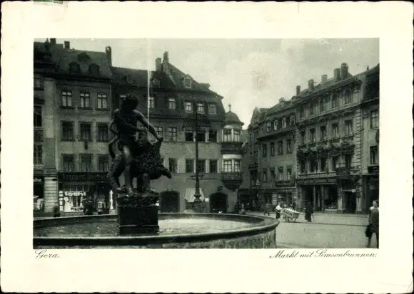Ak Gera in Thüringen, Markt mit Simsonbrunnen