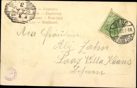 Zustand, siehe Scan, gelaufen, 1903 - ca 14 cm X 9 cm