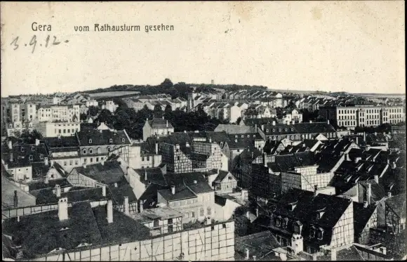 Ak Gera in Thüringen, Ort vom Rathausturm gesehen