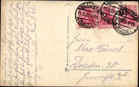 Zustand, siehe Scan, gelaufen, 1920 - ca 14 cm X 9 cm