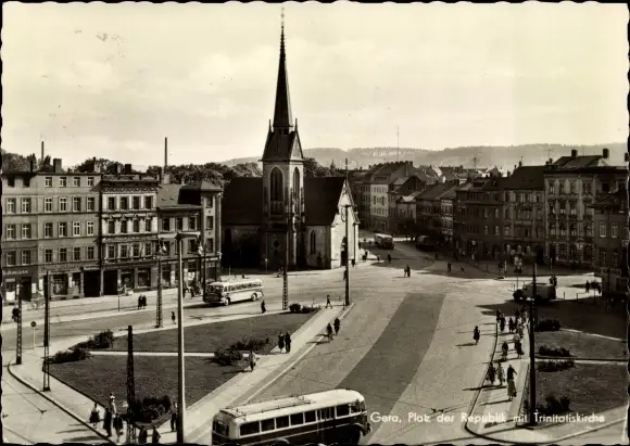 Ak Gera in Thüringen, Platz der Republik, Trinitatiskirche, Bus
