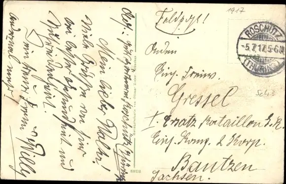 Zustand, siehe Scan, gelaufen, 1917- Zieher 4543 - ca 14 cm X 9 cm