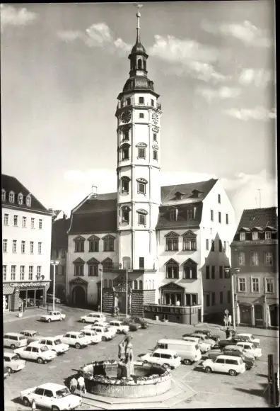 Ak Gera in Thüringen, Rathaus, Brunnen, Parkplatz, Autos