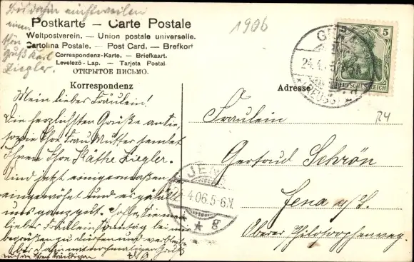 Zustand, siehe Scan, gelaufen, 1906 - ca 14 cm X 9 cm