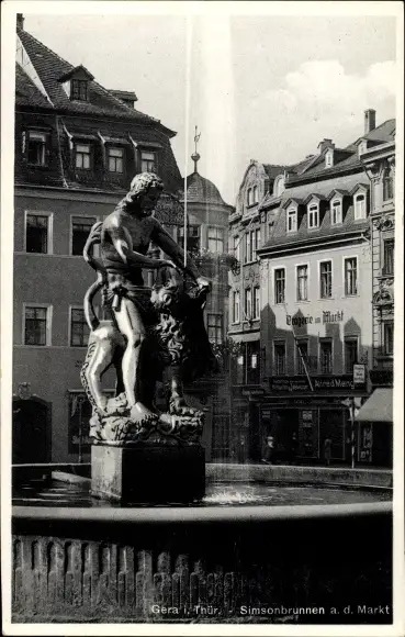 Ak Gera in Thüringen, Simsonbrunnen auf dem Markt