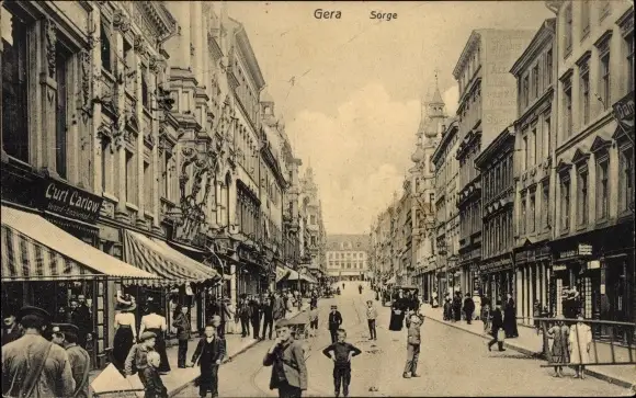 Ak Gera in Thüringen, Sorge, Straßenpartie, Passanten