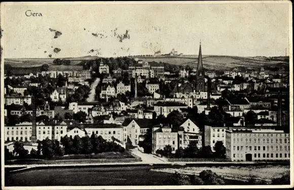 Ak Gera in Thüringen, Teilansicht der Stadt, Wohnhäuser, Kirche, Fabrik