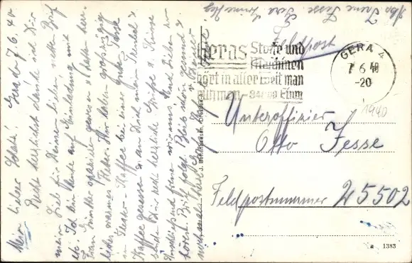 Zustand, siehe Scan, gelaufen, 1940 - ca 14 cm X 9 cm