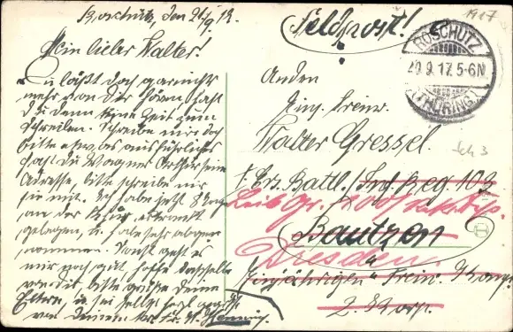 Zustand, siehe Scan, gelaufen, 1917 - ca 14 cm X 9 cm