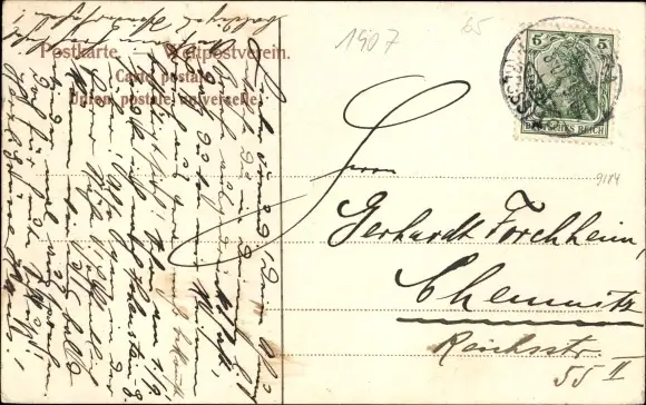 Zustand, siehe Scan, gelaufen, 1907 - ca 14 cm X 9 cm