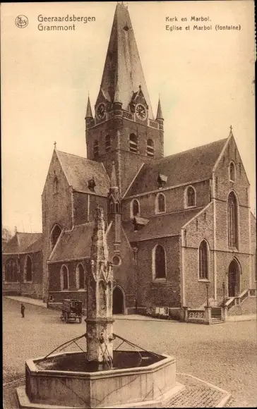 Ak Geraardsbergen Grammont Ostflandern, Kirche, Brunnen