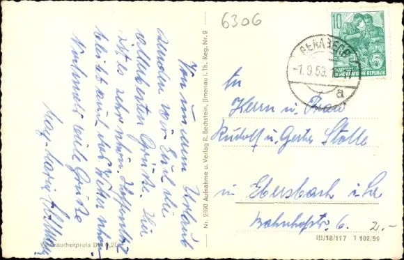 Zustand, siehe Scan, gelaufen, 1959 - ca 14 cm X 9 cm