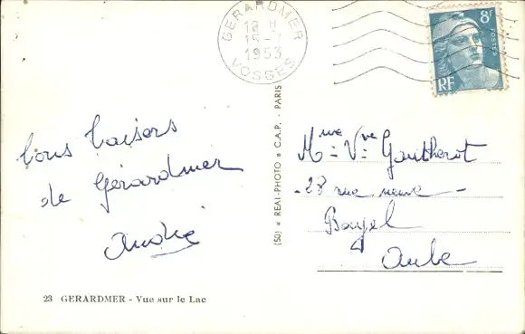 Zustand, siehe Scan, gelaufen, 1953 - ca 14 cm X 9 cm