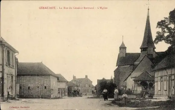 Ak Géraudot Aube, La Rue du General Betrand, Kirche