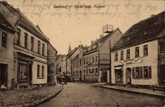 Ak Gerbstedt im Harzvorland, Straßenansicht, beim Postamt, Geschäfte
