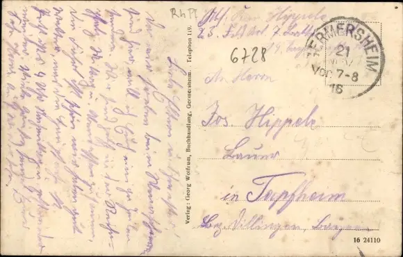 Zustand, siehe Scan, gelaufen, 1916 - ca 14 cm X 9 cm