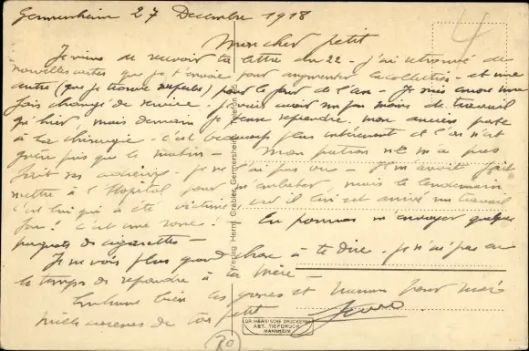 ungelaufen, datiert 1918, Rückseite beschrieben, sehr guter Zustand
