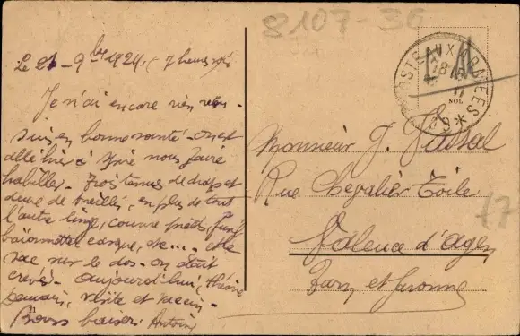 Zustand, siehe Scan, gelaufen, 1924 - ca 14 cm X 9 cm
