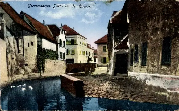 Ak Germersheim am Rhein, Queich, Häuserzeile