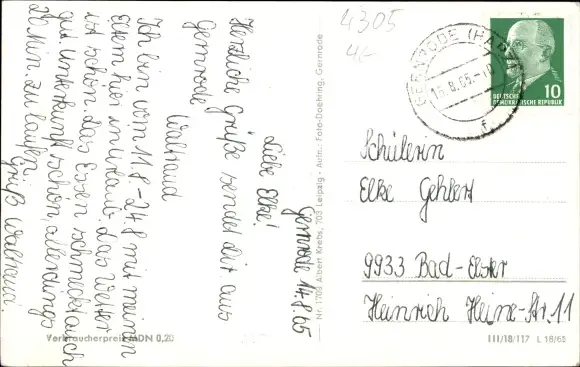 Zustand, siehe Scan, gelaufen, 1965 - ca 14 cm X 9 cm