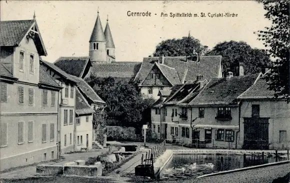 Ak Gernrode Quedlinburg im Harz, Spittelteich, St. Cyriaki-Kirche