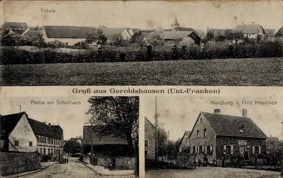 Ak Geroldshausen Unterfranken, Geschäft, Schule, Totalansicht