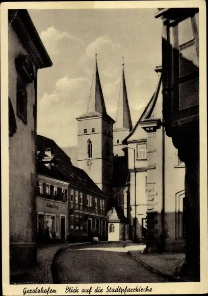 Ak Gerolzhofen in Unterfranken, Blick auf die Stadtpfarrkirche, Straßenansicht
