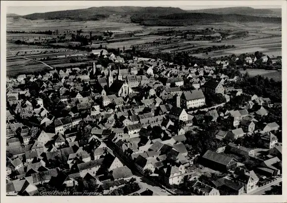 Ak Gerolzhofen in Unterfranken, Luftaufnahme von Stadtansicht, Häuser, Landschaft