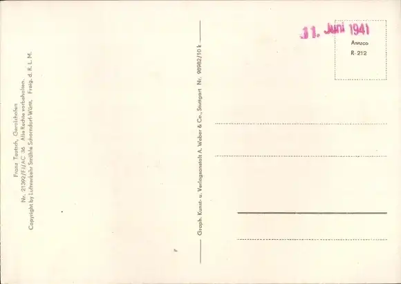 Zustand siehe Scan, gelaufen, 1941 - ca 15 cm X 11 cm