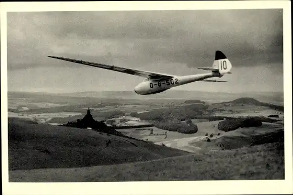 Ak Gersfeld in der Rhön Hessen, Wasserkuppe, Fliegerdenkmal, Segelflugzeug D-6-502