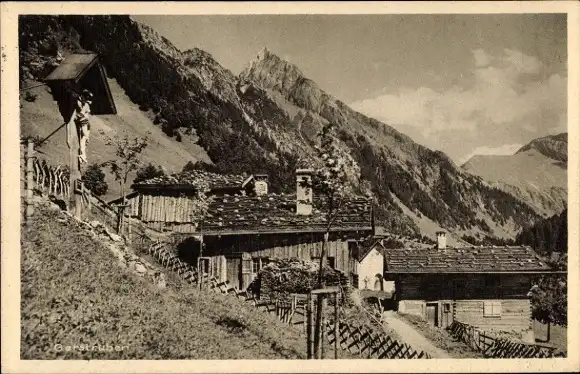 Ak Gerstruben Oberstdorf im Oberallgäu, Hütte, Wegkreuz, Höfats