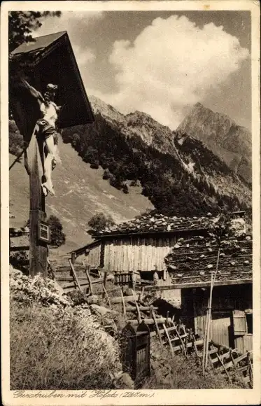 Ak Gerstruben Oberstdorf im Oberallgäu, Wegkreuz, Höfats