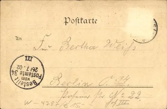 Zustand, siehe Scan, gelaufen, 1902 - ca 14 cm X 9 cm