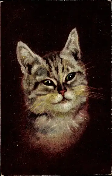 Ak Getigerte Katze, Tierportrait