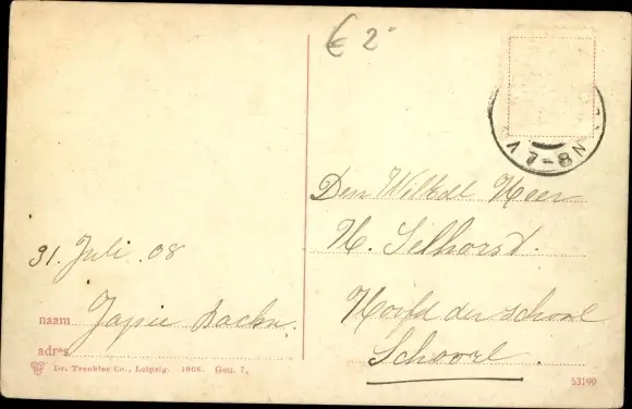 Zustand, siehe Scan, gelaufen, 1908 - ca 14 cm X 9 cm