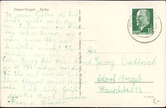 Ansichtskarte, Postkarte, Kirche, Stadtkirche, Gotteshaus, Sakralbau