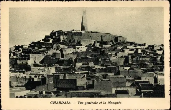 Ak Ghardaia Algerien, vue générale de la ville et la Mosquée