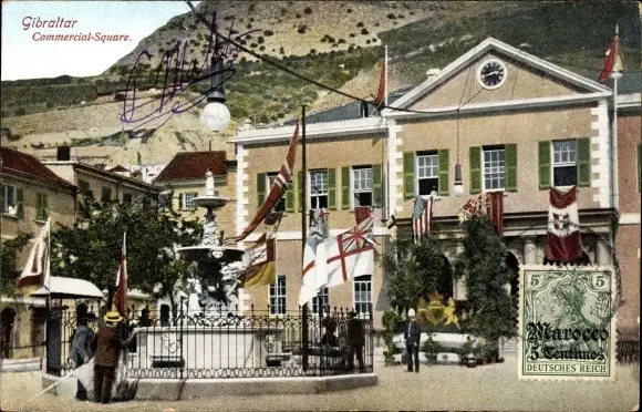 Ak Gibraltar, Commercial Square, Fahnen