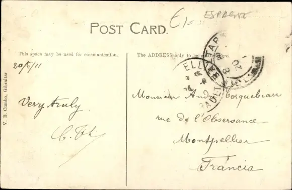 ungelaufen, Rückseite beschrieben, datiert 1911, leichte Eckknicke, sonst guter Zustand